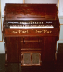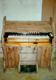 | restauro generale dell'armonium dell'800, tinteggiatura eriverniciatura a noce del mobile, ripristino dei mantici, della tastiera e della meccanica. |